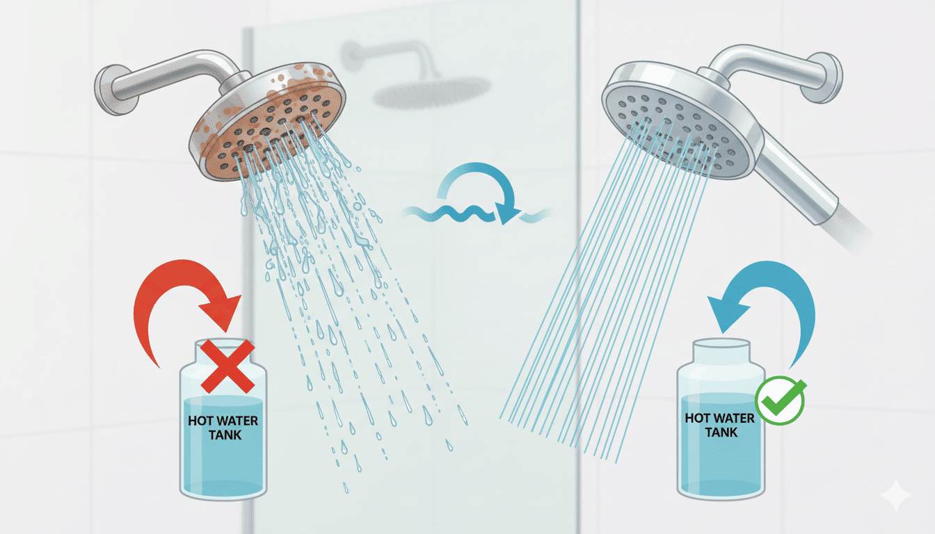 Pour comprendre en détail, voici trois effets principaux d’un pommeau de douche anti-calcaire sur votre consommation d’eau chaude.